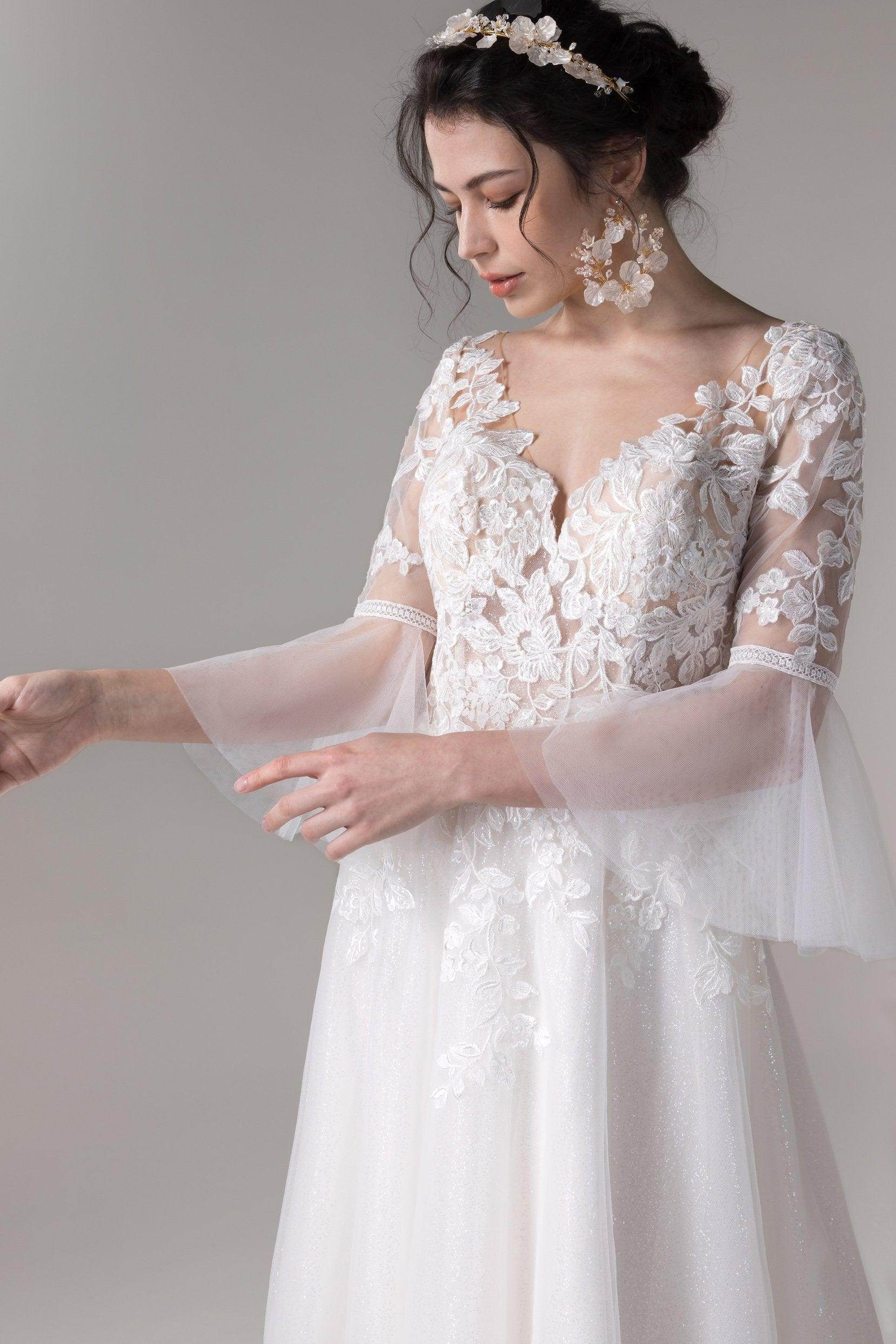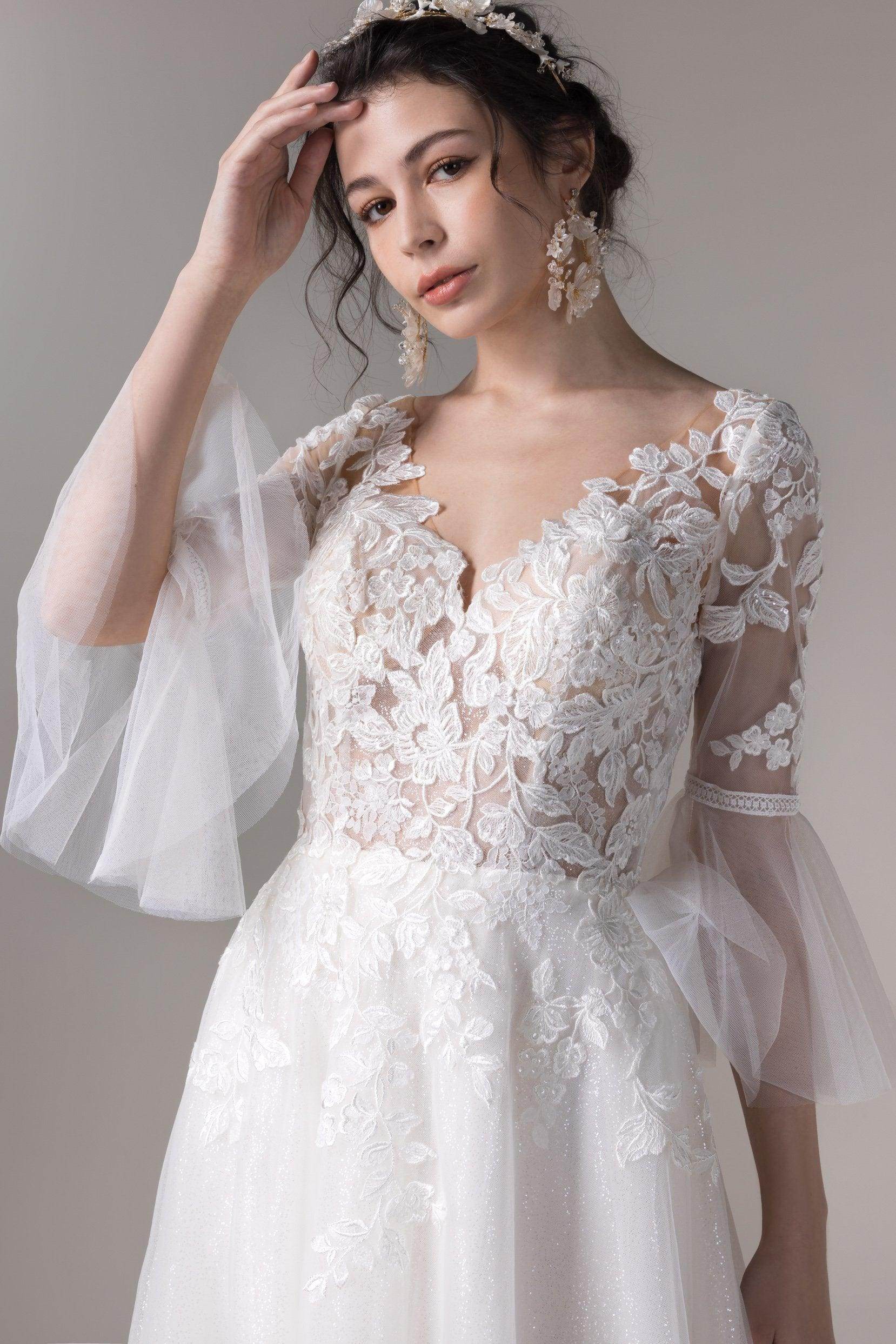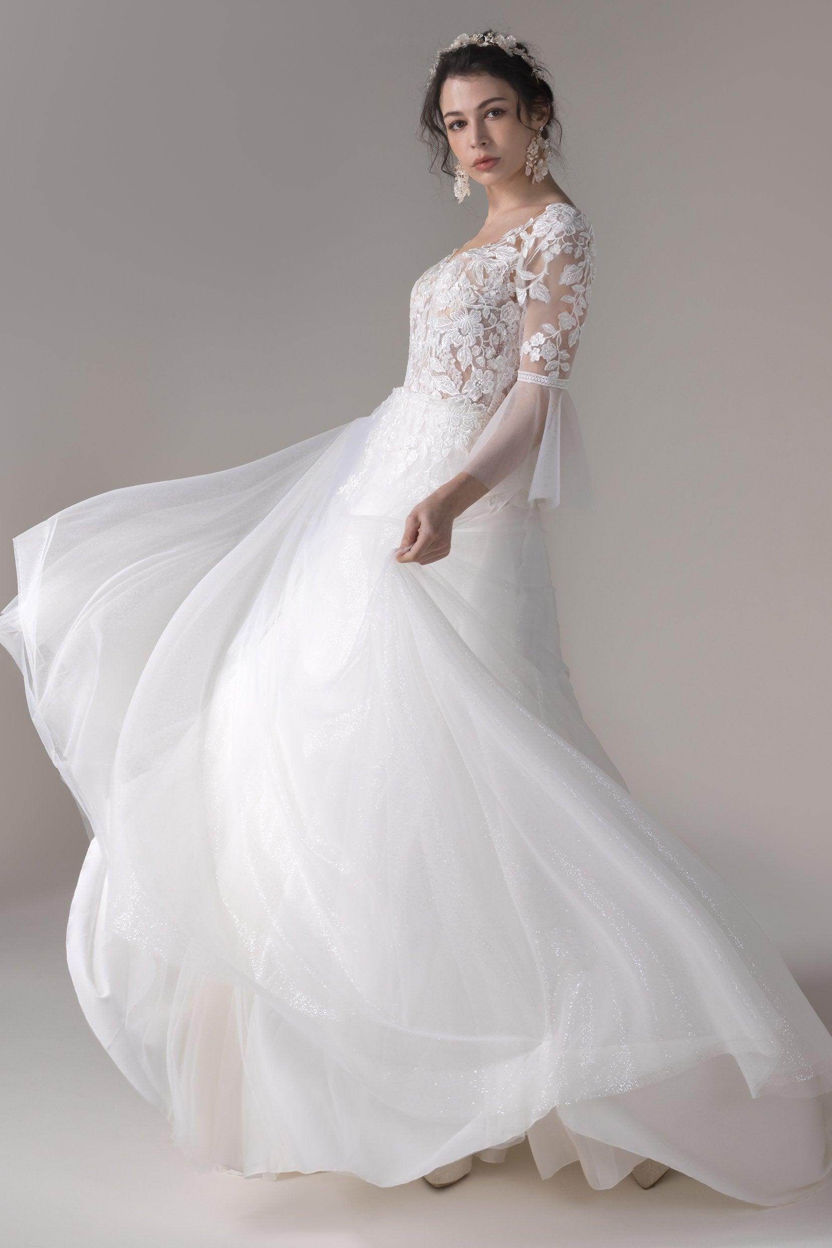 A-Line Court Train Lace Sequined Tulle Wedding Dress CW2784
